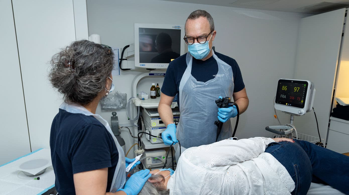 08.00 Dagens program: fire gastroskopier, otte koloskopier, en sigmoideoskopi, tre operationer, fire samtaler/forundersøgelser og helt ekstraordinært kun en enkelt anoskopi. Det er en meget normal patientmængde. Der er en del patienter, især dem, der ikke har prøvet det før, der er nervøse for den her slags undersøgelser. Selv om min sekretær gør meget ud af at forklare om undersøgelsen, når patienterne bestiller tid, er der stadig en del, der er nervøse, når de kommer ind til mig. Derfor gør jeg altid meget ud af at berolige og forklare. Jeg oplever, at mange får fjernet deres nervøsitet, og efter undersøgelsen siger de fleste ofte: »Var det bare det?«.