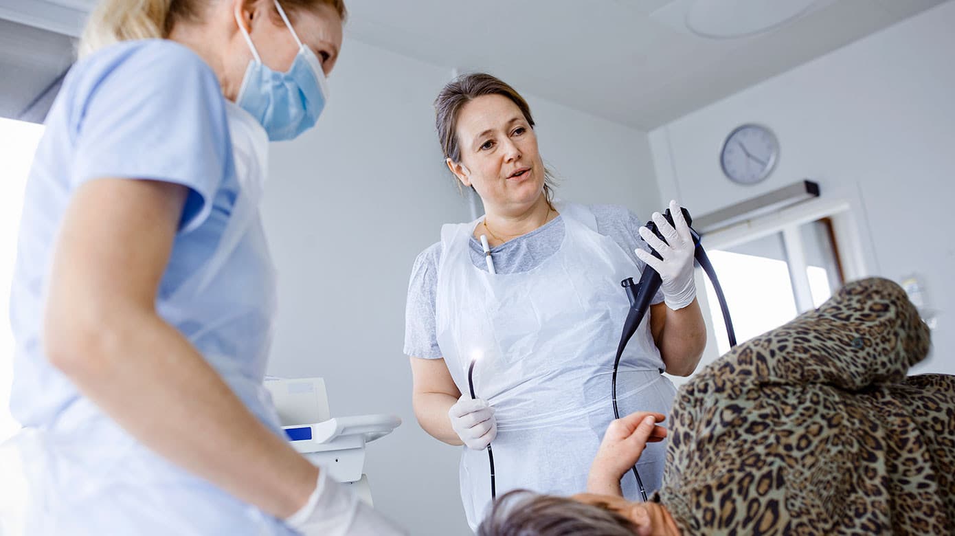 13.00 Jeg har en polsk patient til koloskopi efter frokost. Patienten kan hverken dansk eller engelsk, så jeg har aftalt med Jakub, at han lige stikker hovedet ind og tolker, hvilket jeg er taknemmelig over, at han tager sig tid til. Ud på eftermiddagen ser jeg en yngre kvinde med svær jernmangelanæmi. Hun har ikke menstruationer og ingen symptomer udover træthed. Blodprøverne er fine. Der er inflammatorisk tarmsygdom i nærmeste familie. Koloskopien er helt normal, så jeg booker hende til gastroskopi. Sidst på dagen har jeg småkirurgiske procedurer: en kvinde med en talgkirtel i hovedbunden samt en mand med et fredeligt lipom på ryggen, som jeg ultralydskanner og anbefaler, at vi lader være. Gulvvarmen er heldigvis kommet tilbage og temperaturen i mine store rum behagelig.