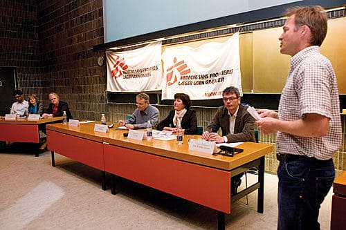 Gennemsnitalderen blandt de fremmødte i Auditorium A på Rigshospitalet denne forårsdag mere end antydede, at der også fremover vil være danske læger, der har lyst og overskud til at påtage sig den opgave det er, at hjælpe ubemidlede syge og svage i de fattigste lande. De var nemlig og med stor interesse mødt op til en paneldebat, arrangeret af de medicinstuderende under Læger uden Grænser (MSF) og med deltagelse fra både Lægeforenin-gen, forskningen og flere politiske partier.