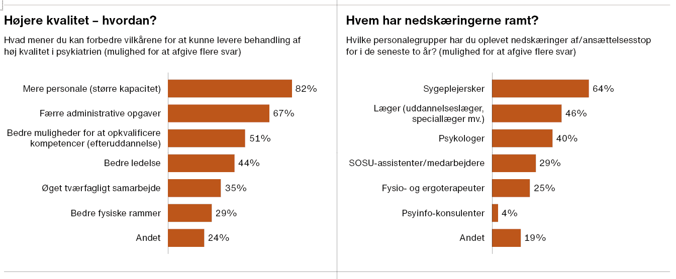 Seks ud af ti læger i psykiatrien har – trods den store politiske opbakning til området – slet ikke mærket nogen positiv udvikling i de seneste to år – og fire ud af ti har ligefrem oplevet nedskæringer og ansættelsesstop, viser ny undersøgelse fra Lægeforeningen.