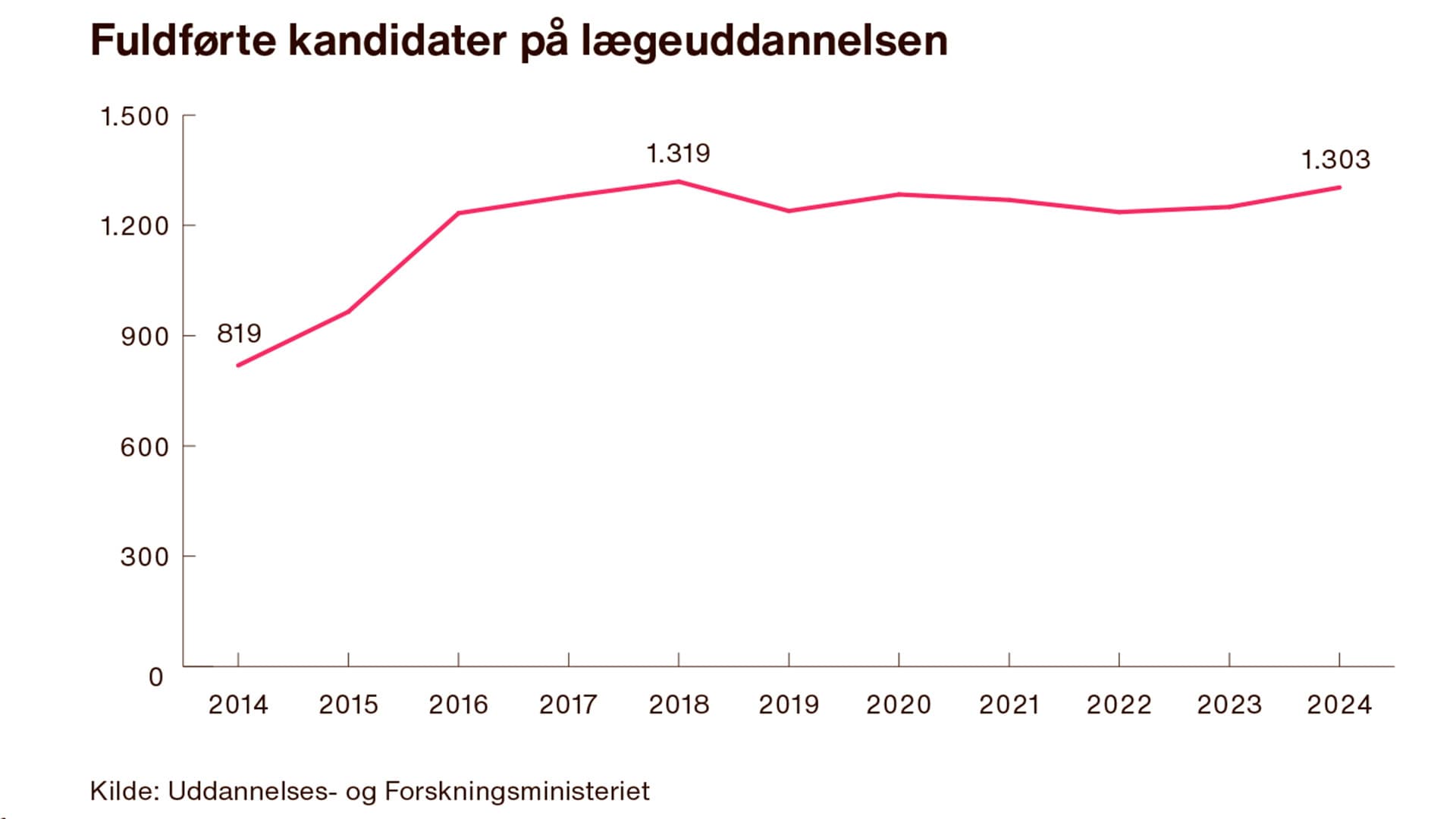 »Vi har ikke arbejdsløshed endnu. Selv om bekymringen kan være stor, så ser vi ikke arbejdsløshed blandt vores yngre kolleger. Vi ser en større konkurrence, som også har handlet om, at de yngste kollegaer ikke har kunnet komme videre i deres speciallægeforløb. Nu får vi flere speciallægeforløb, og så er der forhåbentlig også en større gennemstrømning igennem videreuddannelsen, så vi også får gjort folk til speciallæger, så bare et beroligende ord om, at man altså ikke bliver arbejdsløs som læge, når man er færdiguddannet i dag«.