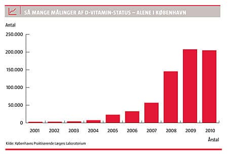 Sundhedsstyrelsen antager, at danske læger årligt foretager analyser for D-vitamin-mangel for næsten 100 millioner skattekroner:
