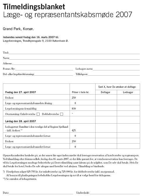 Tilmeldingsblanket Læge- og repræsentantskabsmøde 2007