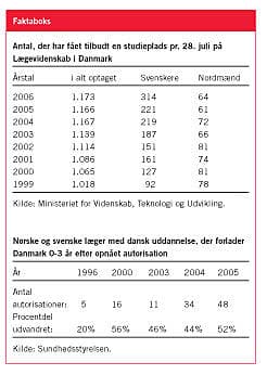 Indtil efteråret 2005 vurderede Sundhedsstyrelsen selv, at kun 20 procent af de svenske og norske medicinstuderende rejste hjem efter endt uddannelse. Men det tal er siden blevet revurderet.