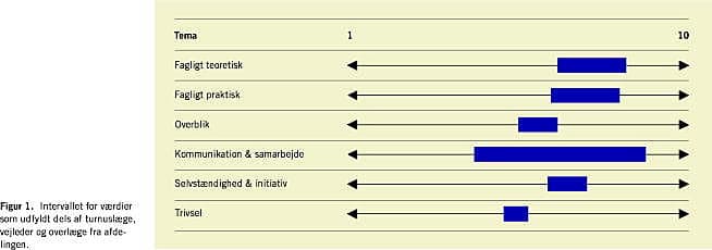 Fra turnuslægerne har vejlederne fået evalueringer med enkelte meget kritiske resultater. Dette viser, at der er et behov for uddannelse til vejlederne. Det at være vejleder stiller i det nye uddannelsessystem store krav, som kun kan honoreres, hvis der fokuseres på funktionen [8]. Fremtidens speciallæge får en tiltagende større rolle i forhold til at uddanne og vejlede yngre kolleger. Målbeskrivelserne er dog ikke fulgt op af tilsvarende initiativer til at sikre, at der er kompetence til at vejlede og til at evaluere de opstillede mål. Turnuslægernes evaluering af afdelingen viser også, at der er funktioner, som ikke vægtes særlig højt, når det gælder uddannelsesværdi. Konferencer får som helhed en lav score bortset fra teamkonferencer. Teamsystemet har medført en effektiv uddannelse af yngre læger og samtidig optimeret behandlingsforløbet for patienterne. Nogle af de funktioner, som afdelingen har fundet meget positive, har fået beskedne karakterer. Det gælder de såkaldte brokmøder, hvor der er afsat tid til kritik af løst og fast. Møderne er dog stadigvæk aktuelle, da de giver mulighed for at diskutere emner, som opstår og påvirker afdelingens arbejdsforhold.