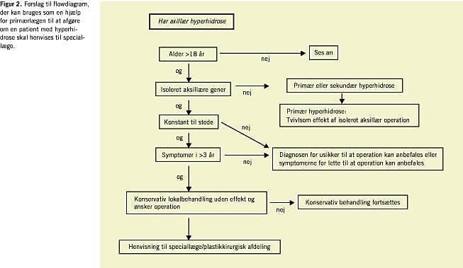 På denne baggrund kan diagnosen aksillær hyperhidrose stilles, og flowdiagrammet i Figur 2 kan bruges i den videre behandlingsstrategi.
