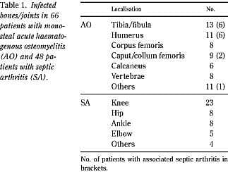 - Anderson JR, Orr JD, Maclean DA, Scobie WG. Acute hematogenous osteomyelitis. Arch Dis Child 1980; 55: 953-7.
