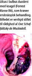 Blødende ulcus: Gennem databasens levetid er opfyldelsen af »tid til gastroskopi« fordoblet, så 43% nu får foretaget gastroskopi inden for tre timer fra indlæggelse. Kvaliteten af den endoskopiske procedure er høj, idet der opnås primær hæmostase ved gastroskopi hos 94%, og kun ses reblødning hos 13%. Kun hos 5% er det nødvendigt med operativ hæmostase. Mortaliteten for gruppen er stabil - omkring 11%.