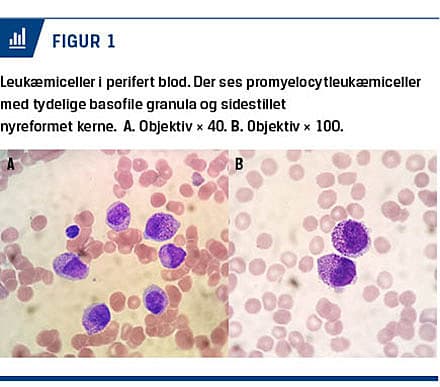 Akut promyelocytleukæmi (APL) er en sjælden undertype af akut myeloid leukæmi (AML). Samlet diagnosticeres der årligt 250 patienter med AML i Danmark. Af disse diagnoser udgør APL 2-4%, hvilket svarer til 5-10 nye patienter med APL pr. år. Det giver en årlig incidens på ca. 0,15 pr. 100.000, hvilket også ses i andre vesteuropæiske lande [1, 2]. Det er vigtigt at skelne APL fra de øvrige akutte leukæmier pga. de helt særlige sygdomskarakteristika og de exceptionelt gode behandlingsmuligheder. Ved mistanke om akut leukæmi hos en patient i primærsektoren, skal patienten henvises til en hæmatologisk specialafdeling og her udredes.