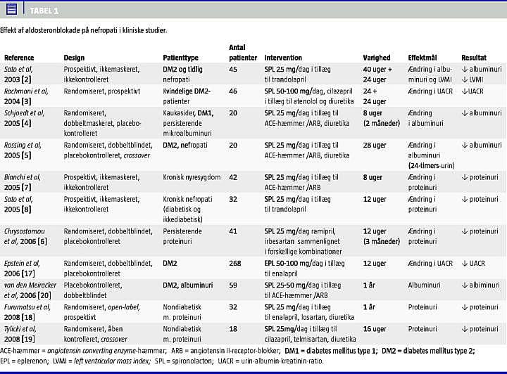 I Randomized Aldactone Evaluation Study (RALES) og senere Eplerenone Post-Acute Myocardial Infarction Heart Failure Efficacy and Survival Study (EPHESUS) har man ved hjælp af henholdsvis spironolacton (SPL) og eplerenon (EPL) vist, at blokade af MR signifikant forbedrer overlevelsen og reducerer morbiditeten hos patienter med kronisk hjertesygdom og/eller hjerteinfarkt. Dette har åbnet op for studier af aldosterons mulige patogene effekt for udvikling og progression af kronisk nyresygdom (Figur 1 ).