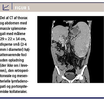 I 1993 blev en dengang 14-årig dreng overflyttet til en medicinsk afdeling fra et længere udredningsforløb i pædiatrisk regi. Symptomerne var træthed, dyspnø og mavesmerter. Ved CT fandt man en monstrøs forstørret milt samt generaliseret forstørrede lymfeknuder i aksiller, thorax og abdomen (Figur 1). I lungerne sås nodulære infiltrater. Bioptisk fandt man granulomer med kæmpeceller, men ingen nekrose. Der var intet holdepunkt for malignt lymfom. Et omfattende undersøgelsesprogram bidrog ikke yderligere til diagnosen.