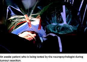 Vågen kraniotomi anvendes i forbindelse med tumorkirurgi i de tilfælde, hvor tumor ligger i områder af hjernen med særligt vigtige funktioner. Elektrisk stimulation af cortex på den vågne patient under samtidig neuropsykologisk testning af sensorik, motorik og tale er formentlig den bedste måde, hvorpå man kan kortlægge de funktionelle områder i hjernen (mapping ). Rationalet bag vågen kraniotomi er, at der kan udføres maksimal tumorresektion med minimering af de neurologiske deficit. Vi beskriver de anæstesiologiske metoder, der anvendes i forbindelse med vågen kraniotomi, og der gives en retrospektiv opgørelse over 44 procedurer, der er udført på Glostrup Hospital.