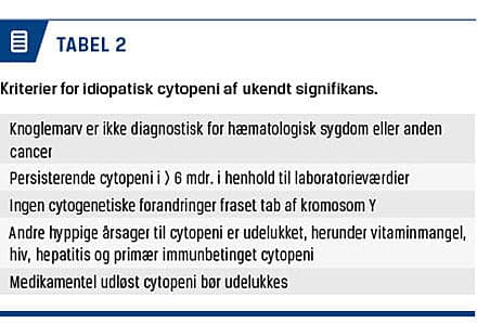 I denne artikel har vi fokus på patienter, som har cytopeni og er henvist til videreudredning på en hæmatologisk afdeling. Hos disse patienter vil der typisk blive foretaget yderligere blodprøver, knoglemarvsbiopsi,