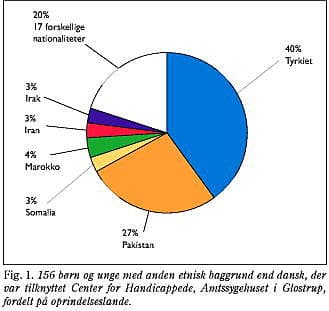I Københavns Amt udgør indvandrer/efterkommerpopulationen i alderen 0-20 år ialt 21.623, heraf er 7.078 tyrkere (32,7%), og 2.826 er pakistanere (13,1%). Denne overrepræsentation er signifikant (χ2 : p < 0,05). De resterende 21 etniske minoriteter udgjorde hver især for lille et antal til, at man kunne foretage statistik.