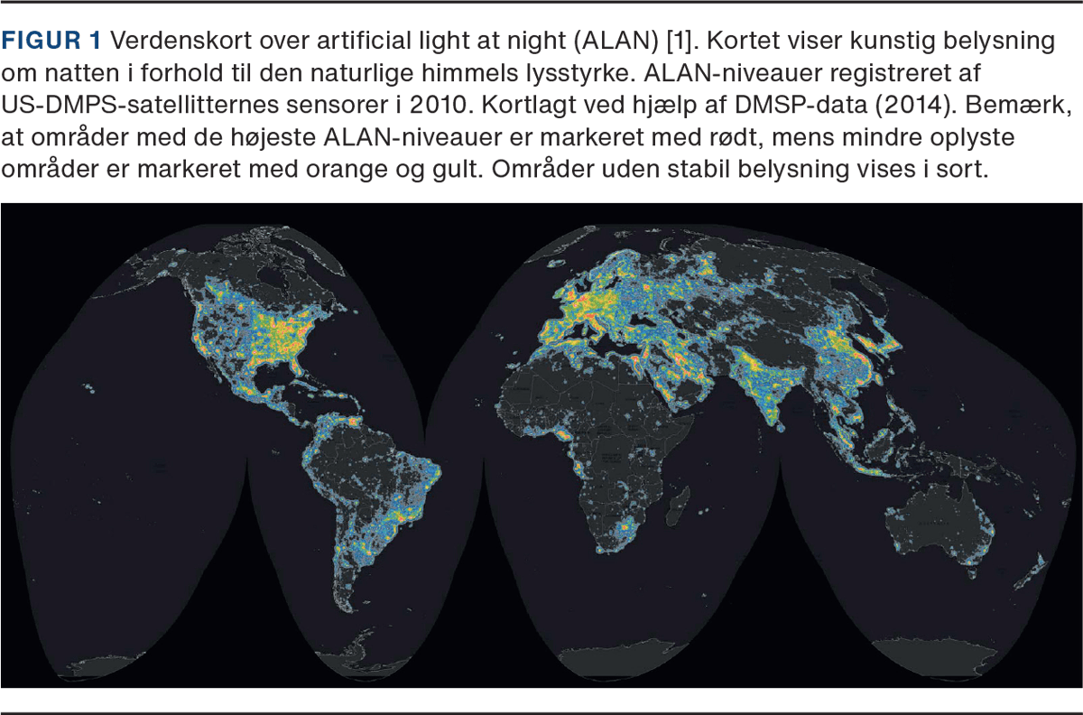 Siden opfindelsen af den elektriske glødepære er udbredelsen og brugen af kunstigt (artificielt) lys vokset [1] (Figur 1). Stigningen i lys om natten (gadebelysning, lysreklamer m.m.) (engelsk: artificial light at night - ALAN) er konsekvens af det moderne samfunds behov for at udnytte døgnets 24 timer til produktion. Dog skyldes ALAN i høj grad også rejseaktivitet og underholdning, herunder et stort forbrug af elektronik.