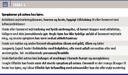Det er vanskeligt at stille den specifikke astmadiagnose hos småbørn, da symptomerne er uspecifikke, og vi mangler metoder til objektive mål. Diagnosen baseres derfor primært på symptomer (Tabel 1) og respons på behandling.