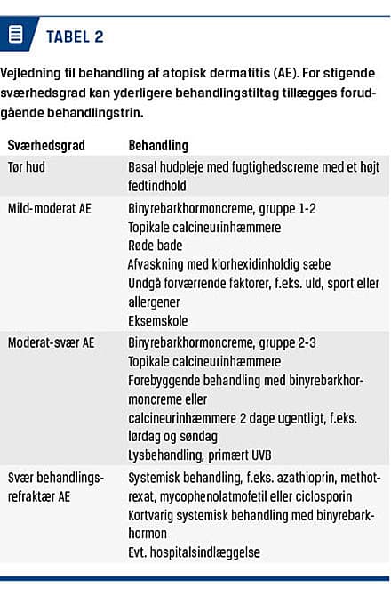 Behandling af AE tager udgangspunkt i guidelines fra Dansk Dermatologisk Selskab og European Task Force on Atopic Dermatitis [27, 28].