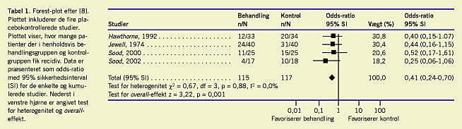 Den metodologiske kvalitet blev bestemt ved the Jadad scale [10]. Alle studier blev gransket af to af Cochrane-analysens tre forfattere uafhængigt af hinanden, og enhver diskrepans mellem forfatterne blev løst ved konsensus med den tredje forfatter.