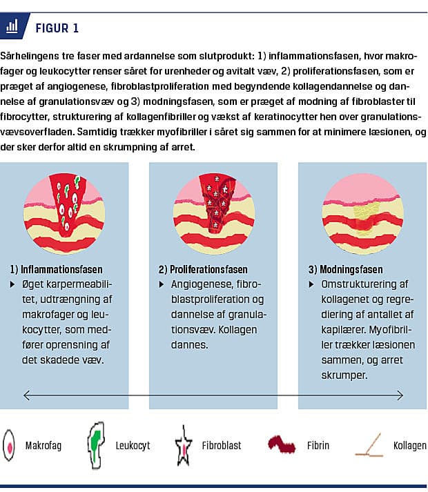 I et sår, defineret som et brud på huden med eksponering af underliggende væv, indtræder en helingsproces med et ar som slutprodukt [2] (Figur 1). Ar kan inddeles i atrofiske, normotrofiske, hypertofiske og keloide ar. I denne artikel vil fokus være på de to sidstnævnte.