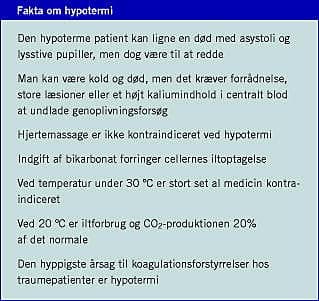 - Olsen DH, Gothgen IH. Behandling af accidentel hypotermi. Ugeskr Læger 2000;162:4790-4.