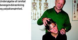 Herudover testes og registreres lokalisering og omfang af ømhed samt kvalitet af nakkens bevægelighed. Rutinemæssigt foretages der en neurologisk screening af kraft, reflekser og sensibilitet samt ved svimmelhed en kranienerveundersøgelse. Omfanget af undersøgelsen er relateret til graden af den enkelte patients symptomer og forhold.