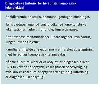 - Kjeldsen AD, Moller TR, Brusgaard K et al. Clinical symptoms according to genotype amongst patients with hereditary haemorrhagic telangiectasia J Intern Med 2005;258:349-55.