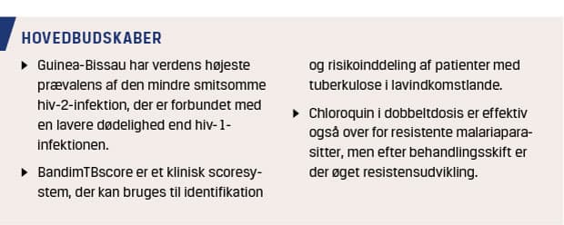 Livslang behandling er stadig et nyt koncept i Afrika, hvor sundhedssystemerne oplever mange udfordringer i form af mangel på sundhedspersonale, ustabile medicinforsyninger, mangel på transportmuligheder, stigmatisering og manglende viden om hiv. Alle disse faktorer indebærer en høj risiko for, at patienterne har behandlingspauser og derfor udvikler resistens. Man har i talrige studier fra Bissau HIV Kohorten identificeret problemer med at levere hiv-behandling af tilstrækkelig høj kvalitet [7], bl.a. mistes en stor andel af patienterne ved manglende opfølgning [8], sen diagnose og mangel på pålidelige diagnostiske test [9] samt massive problemer med behandlingssvigt og resistensudvikling [10, 11].