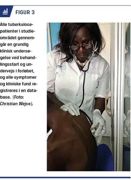 Der har desuden været fokus på komorbiditeter og deres betydning for tb. Bl.a. har den dobbelte sygdomsbyrde af tb og diabetes været beskrevet [21], og der pågår en række studier af sammenhængen imellem tb og mental sygdom, rygning, alkoholoverforbrug samt hypertension, og det er påvist, at underernæring ikke er en væsentlig risikofaktor for tb [22]. I forskningsindsatsen i Bissau har man tilstræbt at have patienten i fokus i højere grad end sædvanligt i mange lavindkomstlande. Der har været fokus på at bidrage til en bedre håndtering af patienterne og sikre en kapacitetsopbygning i sundhedssektoren, i form af både materiel støtte og uddannelse af personale. Den kliniske forskning har f.eks. medført supervision i form af grand rounds med danske specialister på klinikker og hospitaler i Bissau.