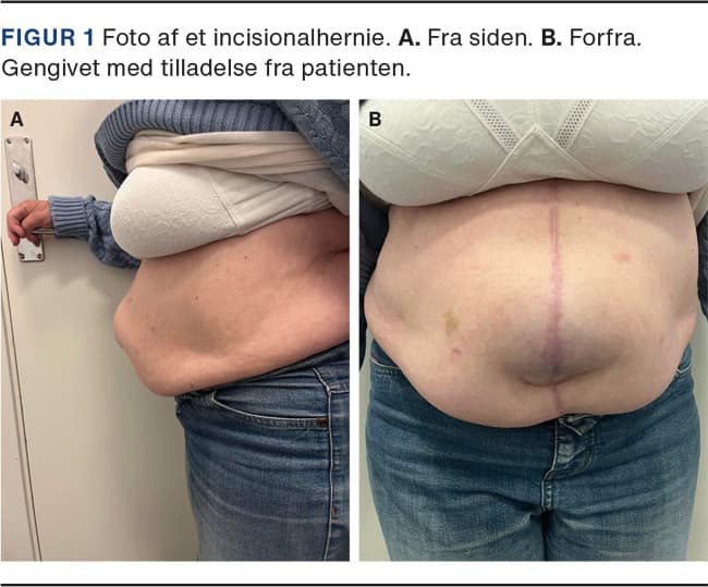 Disponerende faktorer til at udvikle incisional- eller parastomalhernie er bl.a. høj alder, overvægt, rygning, diabetes, insufficient teknik ved lukning af cikatricen, sårkomplikationer samt genetisk disposition [3, 5, 6]. Der er stor variation i størrelsen og placeringen af hernierne, som kan være alt fra et mindre porthernie til et stort giganthernie. Idet risikoen for komplikationer og recidiv øges med størrelsen af defekten [7], inddeles incisionalhernier efter fasciedefektens (ikke bulens) størrelse udmålt på CT (små hernier: < 4 cm, mellemstore hernier: 4-10 cm, giganthernier: ≥ 10 cm) samt defektens lokalisation i bugvæggen [8]. Parastomalhernier inddeles ligeledes efter størrelse af fasciedefekten, og om patienten samtidig har et incisionalhernie [9]. Patienternes symptomer kan variere fra ingen gener til svært livskvalitetsforringende gener, og det er netop patientens gener, som for de planlagte operationer afgør, om der skal opereres eller ej. Symptomerne er typisk smerter, tyngdefornemmelse, besvær med at udføre dagligdags aktiviteter og sport, social tilbagetrækning og kosmetiske gener [10, 11].