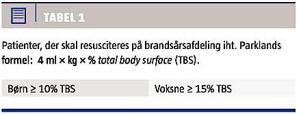 legemsoverflade (total body surface (TBS)) – ses kun lokal ødemdannelse. Derimod ses der en systemisk ødemdannelse ved brandsår > 10% af TBS, hvilket kan medføre hypotension, lungeødem, samt akut tubulointerstitiel nefropati [2-5]. Ved det cirkulære eller næsten cirkulære subdermale ambustio hindres ekspansion af den underliggende subcutis pga. den hårde ueftergivelige beskadigede hud (eschar’et).