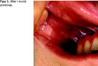 Tilbagevendende aftøs stomatitis findes inden for 15 måneder i mundslimhinden hos næsten alle patienter. Afterne er smertefulde og kan ligne dem, der er forårsaget af traumer, virus eller medikamenter (Figur 1 ).