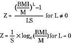 Alle referenceværdier blev statistisk modelleret ved udglatning af kurver med LMS-metoden (13). Denne metode opsummerer fordelingen af den afhængig variable (for eksempel BMI) for kovariaten (for eksempel alder) ved dens median (M) og variationskoefficient (S) samt et mål for symmetrien i materialet baseret på den Box-Cox-potens (L), der kræves for at transformere data til en normalfordeling. En BMI-værdi kan konverteres til et SD-score (Z) ifølge ligningerne: