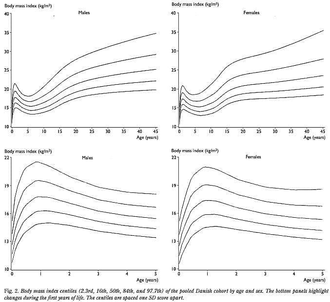- Rolland-Cachera MF, Cole TJ, Sempé M, Tichet J, Rossignol C, Charraud A. Body Mass Index variations: centiles from birth to 87 years. Eur J Clin Nutr 1991; 45: 13-21.