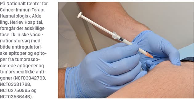 Cancerimmunterapi har et stort og endnu uforløst potentiale til behandling af hæmatologisk cancer. Bl.a. mangler man pga. bekymringen for OTOTE at vise de særdeles potente CAR T-cellers værd til behandling af myeloid cancer. En løsning kan være at designe CAR-T-cellerne, så de kun udtrykker T-cellereceptoren kortvarigt, og man derved undgår drab af alle hæmatopoietiske stamceller. Desuden kan kombinationsbehandlinger med ICPH som rygrad vise sig at være særdeles effektive, især i kombination med terapeutisk cancervaccination. Ydermere er immunsystemet i stand til at dræbe regulatoriske immunceller [30], der ofte infiltrerer tumormikromiljøet og dermed dæmper det tumorspecifikke immunrespons. Immunmedieret drab af disse regulatoriske celler faciliteret af terapeutisk cancervaccination med epitoper fra regulatoriske proteiner kan potentielt dæmpe immunreguleringen i tumorvævet og dermed øge tumorcelledrabet. Vaccination med sådan to regulatoriske epitoper afprøves i kliniske fase I-vaccinationsstudier ved hhv. myelomatose og FL. Hvis vaccinerne tåles og inducerer et antiregulatorisk immunrespons, har de potentiale til at blive anvendt til cancervaccination mod såvel solide som hæmatologiske kræftsygdomme.