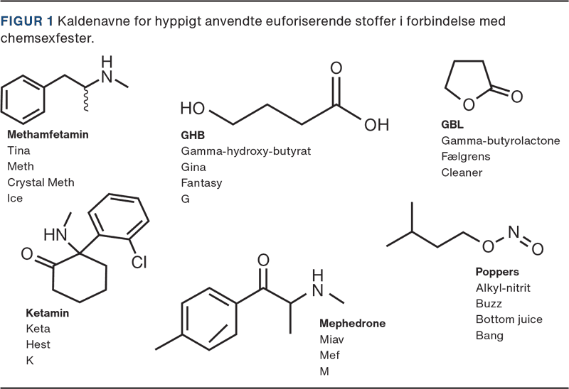 Chemsex betegner sex under påvirkning af stoffer og er særligt udbredt blandt mænd, der har sex med mænd, og transpersoner i LGBT+-miljøer [1]. Chemsex opstod omkring år 2000 med udbredelsen af internettet og datingapps, som banede vejen for planlægning af chemsexfester. Deltagere søger intensiveret sex, øget udholdenhed og selvtillid samt fællesskab omkring stofbrug og seksuel frigørelse [2] modsat den øvrige befolkning, hvor stoffer i nattelivet bruges til at opnå energi, vågenhed, opstemthed og lyst til at socialisere. Stoffer kan også tages for at dæmpe angst eller »ondt i livet«. Siden 1960’erne har poppers været en del af det homoseksuelle miljø, mens chemsex i dag ofte involverer en kombination af gamma-hydroxy-butyrat (GHB)/gamma-butyrolakton (GBL) og methamfetamin [3, 4]. Ved brug af GHB/GBL opnås afslappethed, velvære og eufori, og methamfetamin anvendes til at blive seksuelt opstemt, energisk og udholdende. Esketamin og mephedron bruges til tider for at opnå hhv. CNS-sløvende/opkvikkende effekt. Poppers giver eufori og muskelafslappethed, bl.a. af sphincter ani, som gør penetration mindre smertefuldt. Indtagelse af stoffer er forbundet med alvorlige sundhedsrisici som seksuelt overførbare infektioner, afhængighed, overdosis og hjertestop [4, 5]. Polysubstansbrug øger risikoen, da GHB er vanskeligt at titrere – få milliliter kan skille eufori fra respirationsstop – og methamfetamin mindsker hæmninger og evnen til at risikovurdere. Da chemsex dyrkes i en mindre subkultur, findes kun få undersøgelser på området, og der er sparsomt med data og statistiske analyser.