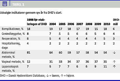 En landsdækkende analyse af postoperativ hospitalisering og morbiditet efter benign hysterektomi afslørede i 2002 en overraskende høj komplikationsrate på 18% [1]. Det var den udfordring, der inspirerede til etableringen af Dansk Hysterektomi Database (DHD) [2]. I alt 4.500 kvinder får årligt udført hysterektomi pga. abnorme blødninger, fibromer eller prolaps. Opgørelser fra DHD bekræfter en høj komplikationsrate [2]. En reduktion vil ikke blot forbedre patienternes livskvalitet, men også få stor samfundsøkonomisk betydning [3].