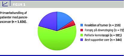 Palliativ kemoterapi er langt den hyppigste behandling, men mindst en femtedel af patienterne får udelukkende symptomatisk behandling pga. dårlig almentilstand. Antallet af patienter, der kun behandles symptomatisk, er formentlig højere end det registrerede, idet kun de behandlende centre indberetter patienter. Antallet af operative aflastninger af galdeveje og/eller duodenum var meget lille, formentlig fordi aflastning nu oftest udføres som endoskopisk indgreb.