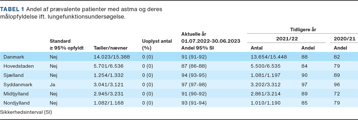 Resultat fra årsrapporten for 1/1-31/12 2022 (ny-diagnosticerede) og 1/7 2022-30/6 2023 (prævalente), Dansk register for Astma (DrAstma) fra Regionernes Kliniske Kvalitetsudviklingsprogram (RKKP).