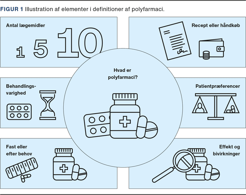 Begrebet polyfarmaci har være anvendt i over 150 år og betyder – direkte oversat – brug af mange lægemidler [5]. Der har gennem tiden været fremsat flere forslag til en definition af polyfarmaci, men der findes endnu ingen entydig og universel definition af begrebet. WHO har defineret polyfarmaci således: