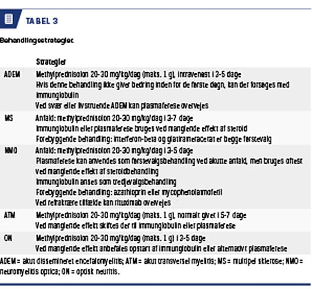 NMO er en autoimmun demyeliniserende sygdom, der primært angriber nervus opticus og medulla spinalis. Tidligere blev NMO opfattet som en variant af MS, men defineres nu som en selvstændig sygdom med en unik patologi og immunpatogenese. NMO er en sjælden sygdom hos børn, men kendskabet til den er vigtig, så man kan erkende diagnosen og påbegynde relevant behandling tidligt i forløbet [20].