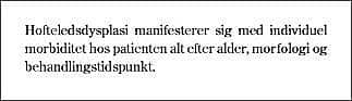 Så længe disse faktorer ikke er sufficient klarlagt, kan komplikationstyngede kirurgiske procedurer, hvormed man tilstræber at normalisere hofteleddets anatomi hos patienter med OA og subluksation (fx Ganz' osteotomi), ikke ukritisk anvendes i en patientgruppe med acetabulær dysplasi med senere symptomdebut, idet procedurerne ikke nødvendigvis ændrer sygdommens naturhistorie. Alloplastikbehandling i mere passive dekader kan være en sikrere løsning.