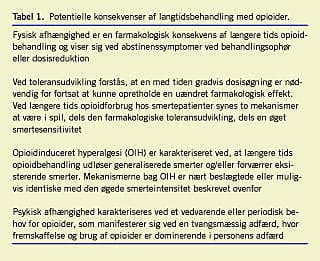Det er væsentligt i relation til operative indgreb at kende de vigtigste begreber vedrørende konsekvenser af langtidsforbrug af opioider (Tabel 1 ).