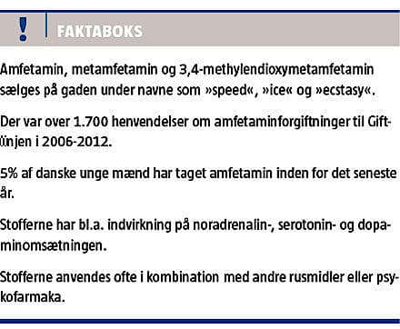 Sundhedsstyrelsen estimerer, at 33.000 danskere har et skadeligt forbrug af euforiserende stoffer [1]. Giftlinjen på Bispebjerg Hospital modtager hvert år ca. 20.000 henvendelser, heraf drejer 3% sig om rusmidler. Over halvdelen af disse henvendelser omhandler amfetamin og dets derivater metamfetamin og methylendioxymetamfetamin (MDMA).