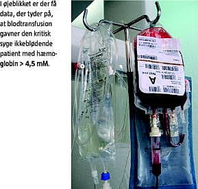 Samlet er der i øjeblikket kun få data, der tyder på, at blodtransfusion gavner den kritisk syge ikkeblødende patient med hæmoglobin > 4,5 mM. Omvendt indikerer det eneste større randomiserede forsøg, at der er subgrupper af patienter, som skades af blodtransfusion.