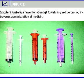 Tekniske løsninger kan nogle gange sikre processer ved at umuliggøre fejl. Et kendt eksempel er, at oxygen- og luftslangen på sygehuse ikke kan ombyttes, fordi formen på stikkontakterne er forskellige. Et andet eksempel er, at man anvender sprøjter med forskellige fatninger og farver til intravenøst respektive peroralt brug (Figur 2 ).