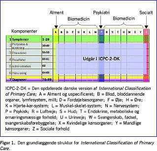 Der findes to systemer, som er udviklet til almen praksis: ICD-10-PC [6], som anvendes i Sverige, og ICPC, som er internationalt udbredt [5]. Desuden tilbyder ICD og det amerikanske Diagnostic and statistical manual of mental disorders (DSM) særskilte klassifikationer for psykiske lidelser i almen praksis (ICD-10 PHC [7] og DSM-IV Primary Care version (DSM-IVPC) [8]). I dansk almen praksis anvendes ICPC med kobling til ICD-10 i form af Udvidet dansk ICPC [9].