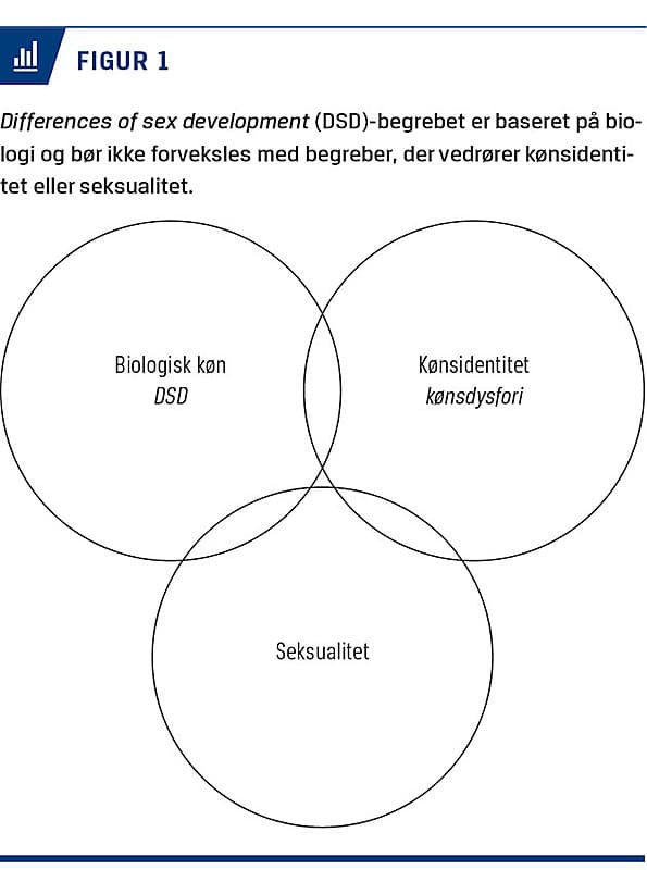 Differences of sex development (DSD) er en fællesmedicinsk betegnelse, som dækker over en lang række sjældne endokrine, genetiske og kromosomale tilstande, der er defineret ved uoverensstemmelse mellem det kromosomale, det gonadale og/eller det anatomiske køn. Denne internationale definition baseres på de kønstypiske karakteristika. DSD-begrebet er således baseret på biologi og bør ikke forveksles med begreber, der vedrører kønsidentitet eller seksualitet (Figur 1).
