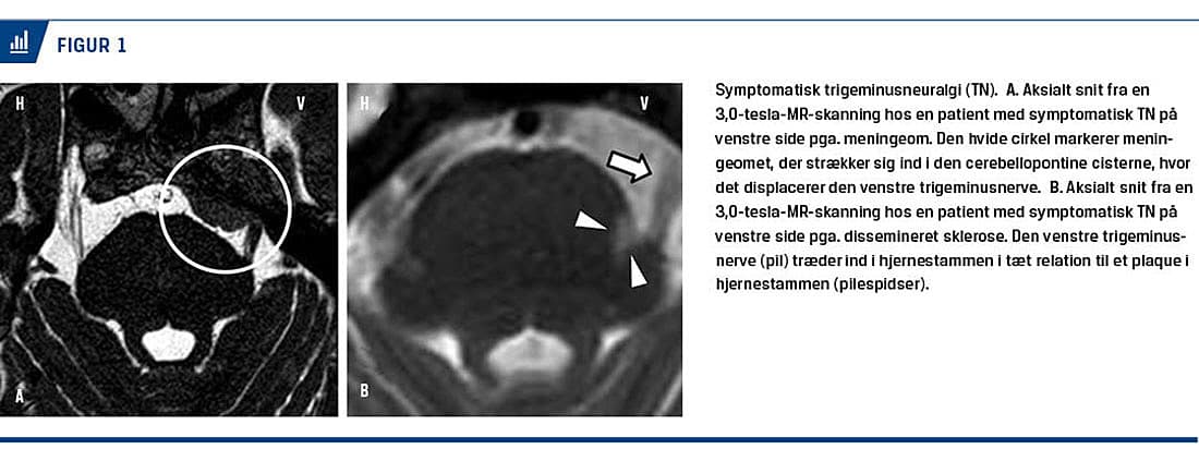 TN inddeles i en klassisk form uden intrakranial patologi og en symptomatisk form, som er sekundær til for eksempel en tumor i den cerebellopontine vinkel eller dissemineret sklerose (Figur 1).