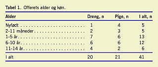 De 41 drab på børn fordelte sig på 20 drenge og 21 piger. Aldersfordelingen fremgår af Tabel 1.