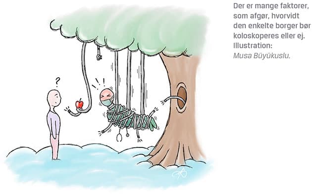 I denne artikel fokuseres der på balancen mellem effekten af den primære screeningskoloskopi og effekten af endoskopisk kontrol i screeningspopulationen.
